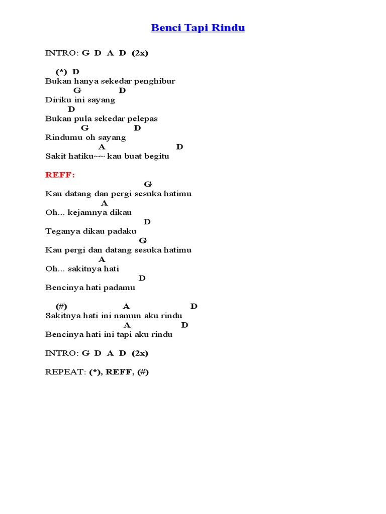 Lagu Benci Tapi Rindu kini bisa kamu dengarkan diberbagai platform musik seperti Spotify Itunes Youtube Music dan lain sebagainya. Kau datang dan pergi. There is no strumming pattern for this song yet.